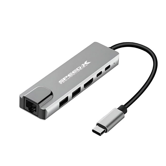 The SpeedX 6-in-1 Multiport USB-C Hub is a powerful docking solution designed to expand the capabilities of your laptop, tablet, or smartphone with a USB-C port. With HDMI 4K output, VGA, Gigabit Ethernet, USB-A ports, and USB-C PD, this hub delivers all-in-one connectivity in a compact design.